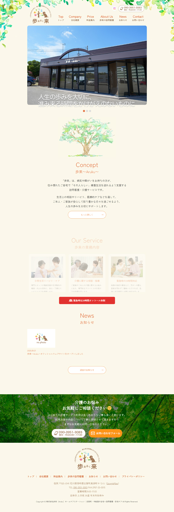 株式会社歩来は、病気や障がいをお持ちの方が、住み慣れたご自宅で「その人らしい」療養生活を送れるよう支援する訪問看護・介護サービスです。